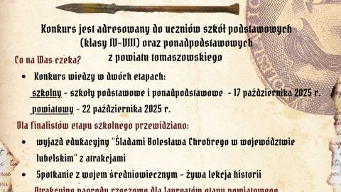 Wspólnie ze Stowarzyszeniem Samorządów Powiatu Tomaszowskiego zapraszamy do udziału w konkursie historycznym „Śladami króla – 1000 lat koronacji Bolesława Chrobrego”. Powiat Tomaszowski jest partnerem wydarzenia i zachęca uczniów szkół podstawowych…