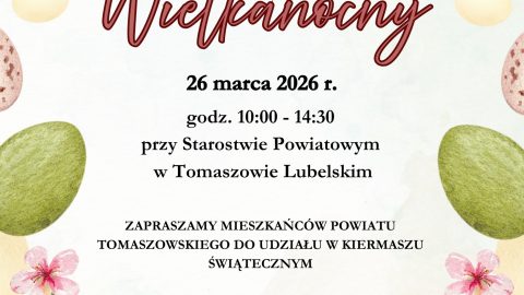 Zapraszamy rękodzielników z terenu Powiatu Tomaszowskiego do zgłaszania udziału w Kiermaszu Wielkanocnym, który odbędzie się 26 marca 2026 r. w godz. 10:00–14:30 przy Starostwie Powiatowym w Tomaszowie Lubelskim. To doskonała…